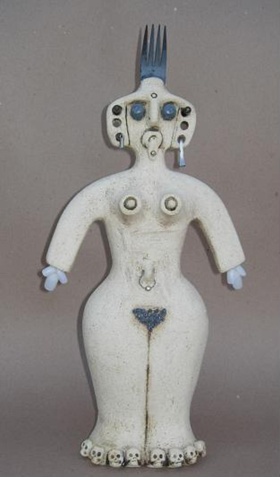 Venus series: The fore-mother for my Venus series is the Venus of Willendorf, also know the Woman of Willendorf. This 4.3 high (11cm) figurine was found 1908 by archaeologist Josef Szombathy at a paleolithic site near Willendorf, a village in Lower Austria near the city of Krems. It is estimated to be made between 24,000 and 22,000 BCE. The figurine is carved from a type of lime stone that isn’t found at the local area and tinted with red ochre.
